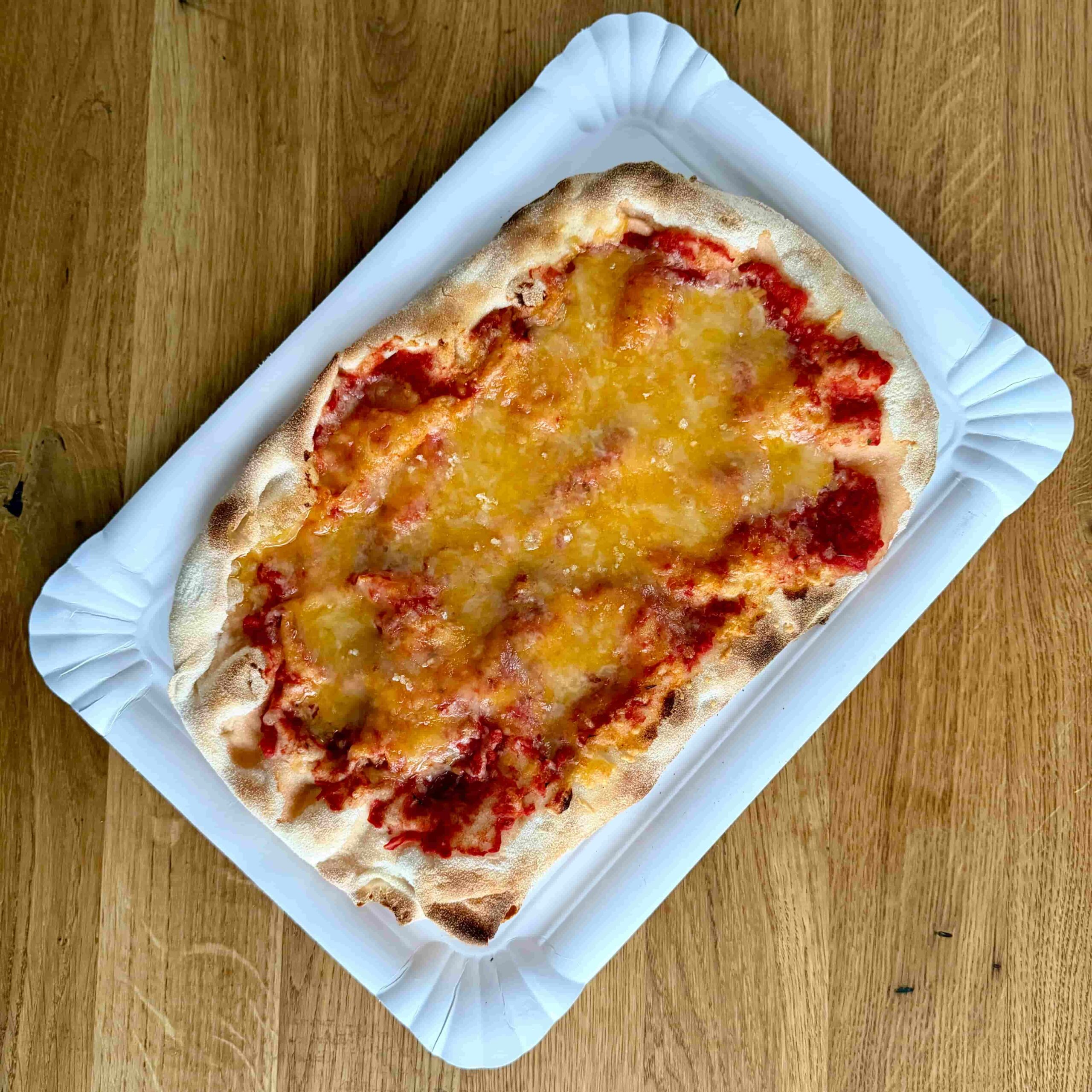 Pinsa Margherita mit hausgemachter Tomatensoße im Nordischen Stil.